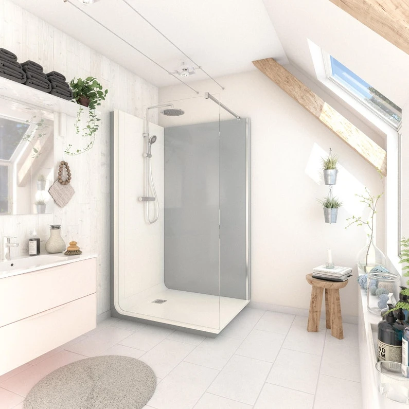 Cabine De Douche L.140 X L.80 Cm Blanc, Verre Transparent, Serenity Ciment