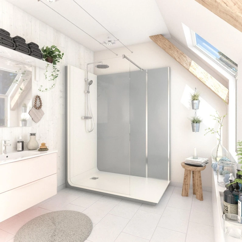 Cabine De Douche L.160 X L.80 Cm Blanc, Verre Transparent, Serenity Pierre
