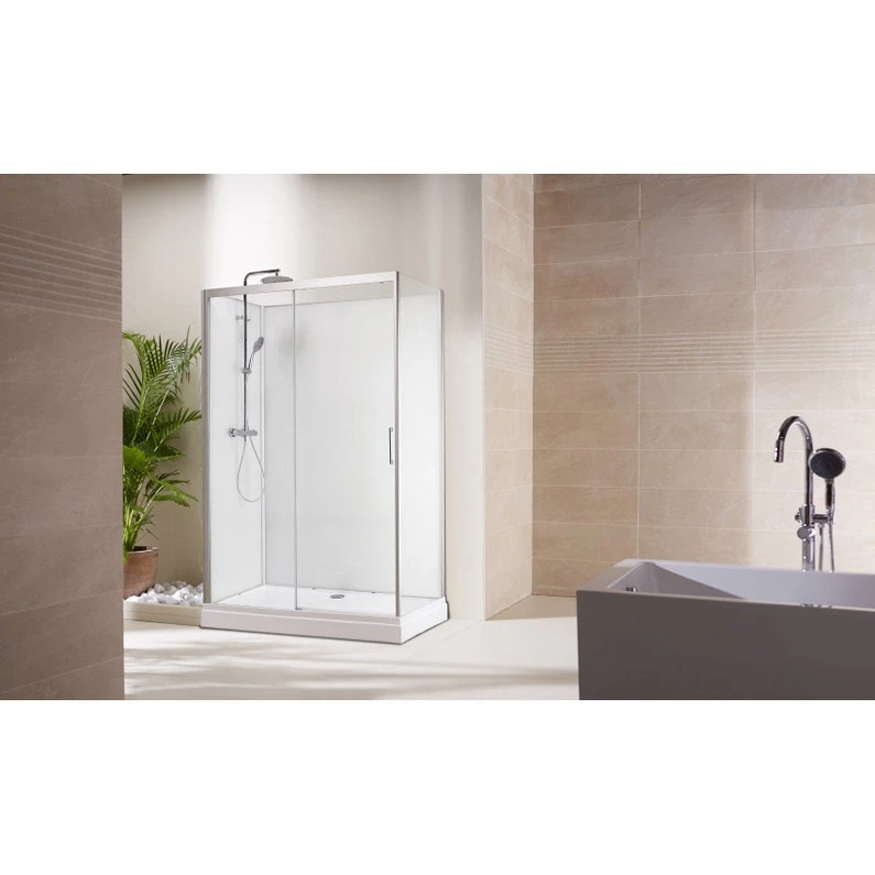 La gamme de cabines LANCASTER est disponible de 90 à 170 cm de large. Installation facile et SANS perçage, finitions hauts de gamme font de la LANCASTER un produit attractif : l’ensemble des parois est en verre trempé 8mm, traité avec notre anticalcaire de fabrication allemande. Les parois de fond sont en verre traité “Pur Blanc” et l’ensemble des profilés est anodisé pour une durabilité optimisée. Doté d’un système de fermeture des portes adouci “Soft Close” et d’un mitigeur thermostatique, d’une barre télescopique réglable en hauteur, d’une douchette haute large en Inox et de roulettes hautes doubles chariot métal, la LANCASTER est une cabine haut de gamme. Le receveur, en Acryl***, est renforcé par des pieds centraux additionnels et bénéficie d’un tablier déclipsables.