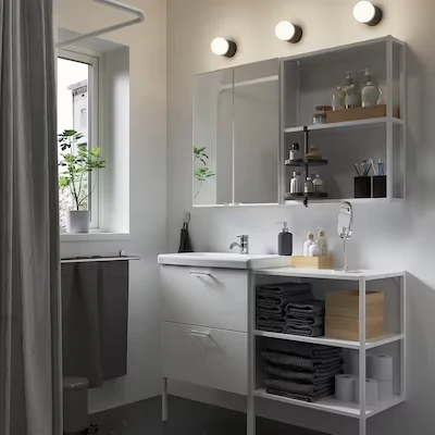 La structure ouverte permet d’avoir une bonne vue d’ensemble des pots et bouteilles, et d’y accéder facilement.
