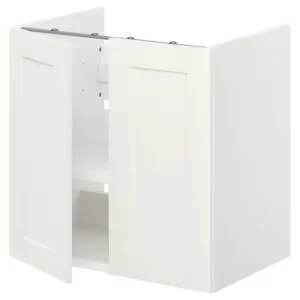 Un élément pour lavabo avec tablette est parfait pour ranger des serviettes ou des produits de beauté qui encombrent souvent l’espace.
