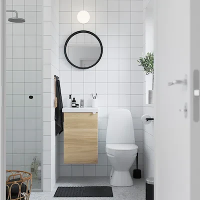 Le plateau et la vasque ronde ont un style simple et épuré, facile à combiner avec d’autres meubles de salle de bain.