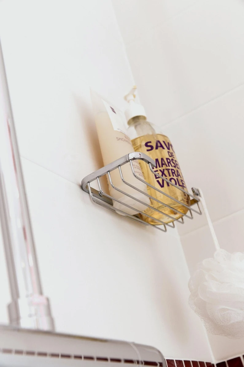 Etagère très pratique et discrète pouvant se placer dans tous les coins de la salle de bain/douche. Garantie 5 ans. Eléments de fixation inclus