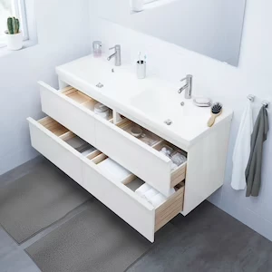Le plateau et la vasque ronde ont un style simple et épuré, facile à combiner avec d’autres meubles de salle de bain.