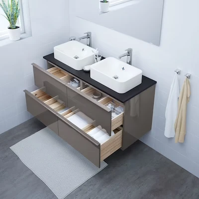 Le plateau et la vasque ronde ont un style simple et épuré, facile à combiner avec d’autres meubles de salle de bain.