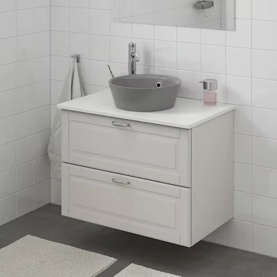 Le plateau et la vasque ronde ont un style simple et épuré, facile à combiner avec d’autres meubles de salle de bain.
