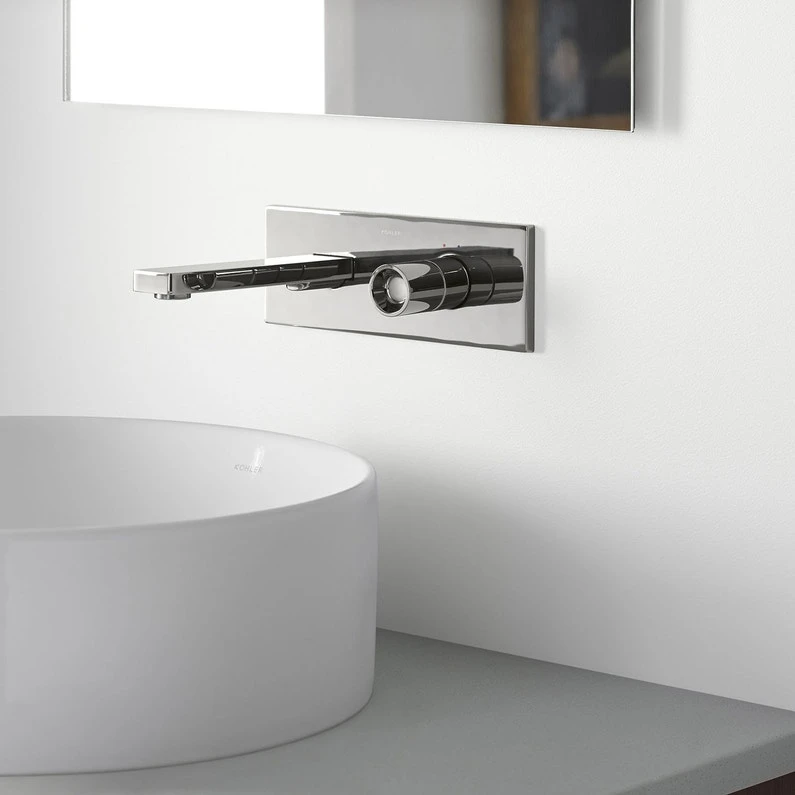 Mitigeur lavabo mural – levier “Pure”. Avec corps à encastrer et platine en laiton. Débit limité à 5 l/mn. Aérateur anti-calcaire. Sans bonde de vidage.