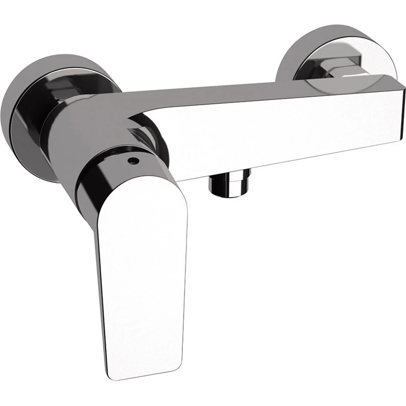 Mitigeur Douche mural nu design, entraxe 150mm, équipé d’une cartouche à disques céramiques diam 35, manette métal, sortie douche M15/21, entrées d’eau F20/27 à écrous, rosaces laiton rondes, chromé.