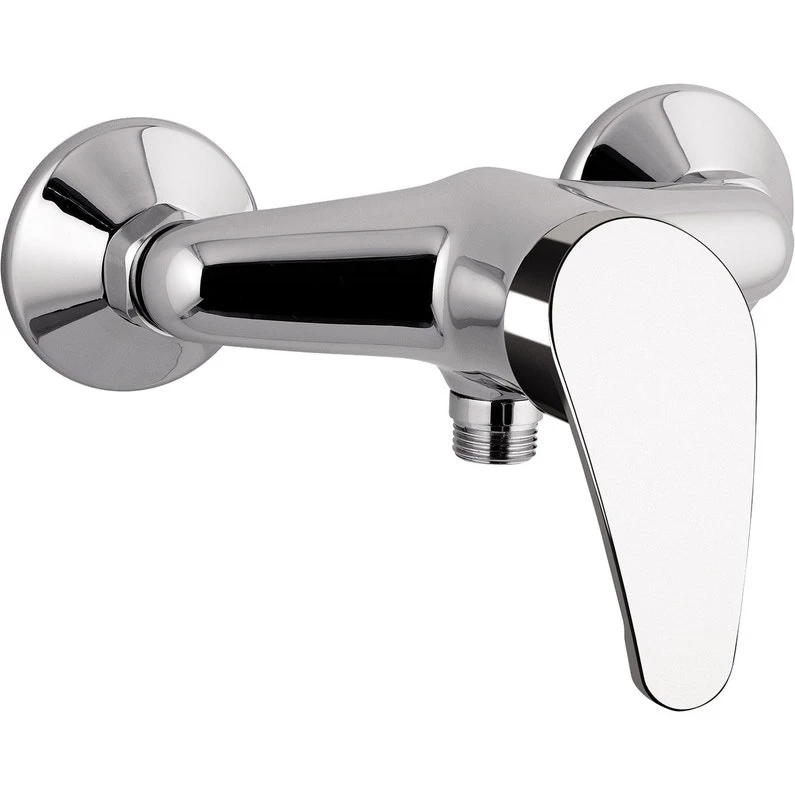 Mitigeur Douche mural nu, entraxe 150mm, équipé d’une cartouche à disques céramiques diam 40 avec butée de débit (économie d’eau), manette métal, sortie douche M15/21, entrées d’eau F20/27 à écrous, rosaces laiton rondes, chromé.