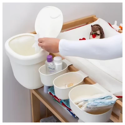 Avec ces paniers, vous pouvez garder tout ce que vous voulez à portée de main près de la table à langer, des couches aux lingettes en passant par les crèmes et les serviettes. Idéal si votre bébé adore gigoter et demande toute votre attention.