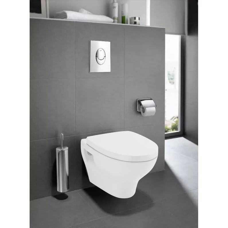 Ensemble Bâti support Grohe Rapid SL Autoportant. Réservoir et mécanisme certifié NF. Réservoir isolé anti-condensation Livré avec plaque de commande double débit (réglage d’usine 3/6L). Chassis en Acier Epoxy. Cuvette suspendue Pop, abattant frein de chute en thermodur NF, déclipsable.