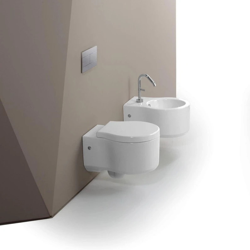 Pack WC suspendu avec bâti-support au sol: réservoir à mécanisme 3/6L Cuvette suspendue 54 x 36 cm. Abattant thermodur à descente progressive, charnières métal. Fixations incluses.