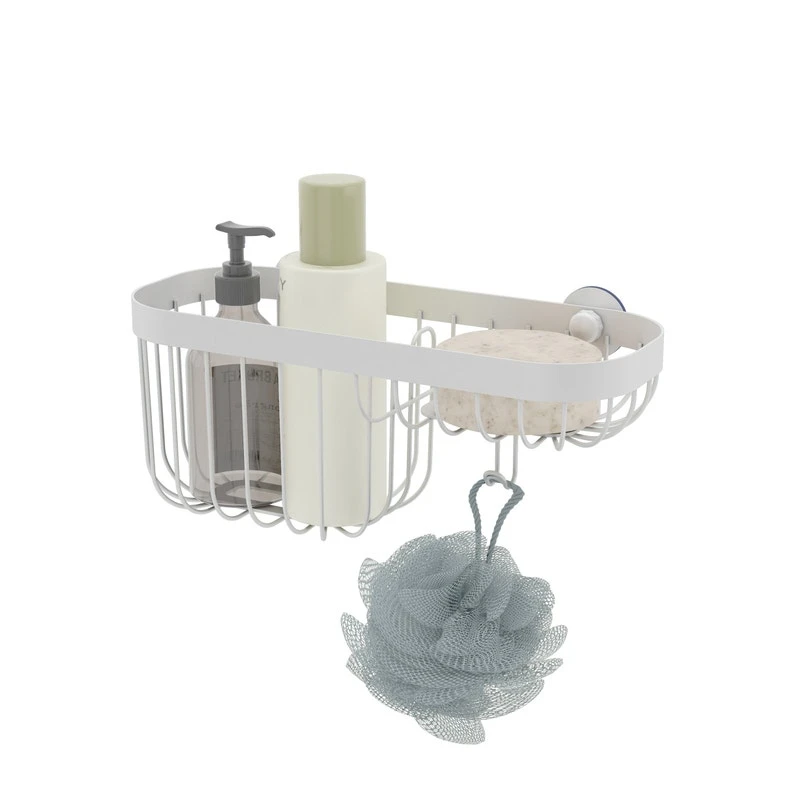Panier combiné de douche, fixation sans perçage à l’aide d’une ventouse. A l’aide du support pédagogique, je choisis le système de fixation adapté à la surface de ma douche.