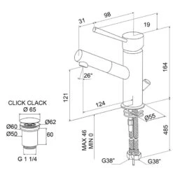 Mitigeur De Lavabo Chrome Brillant, REMER Ermesse Avec Vidage Clic Clac