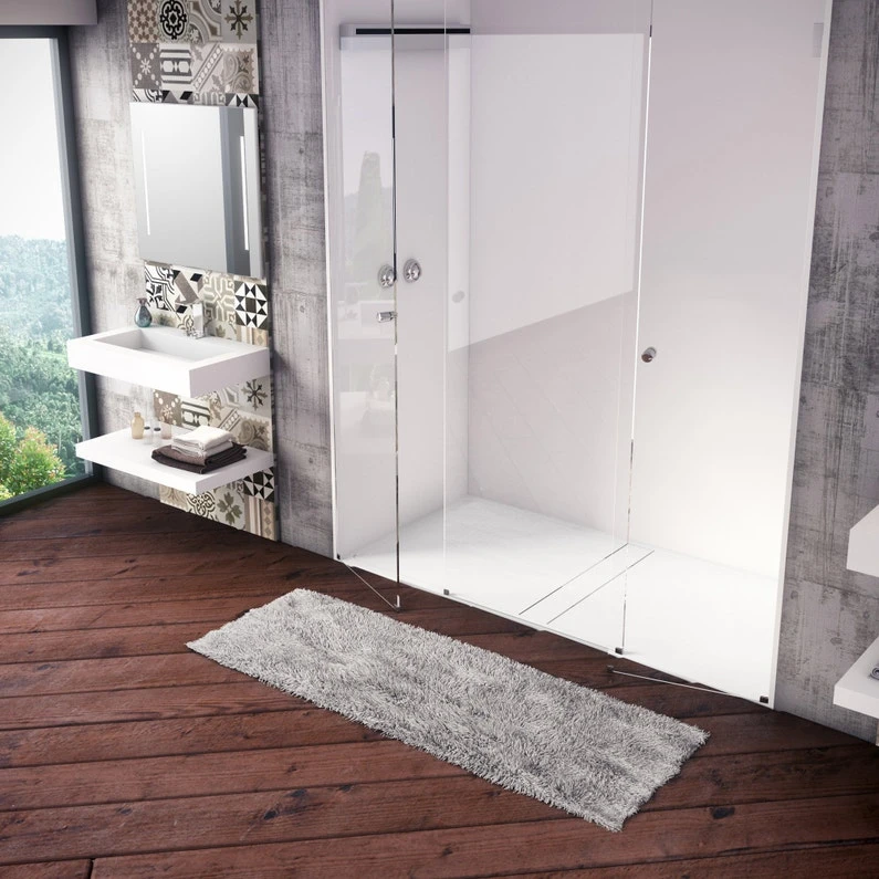 Receveurs de douche extraplats, Antidérapant classe 2, Différentes couleurs disponibles, Facile d’entretien, 0% de porosité, Résistant sur le long terme, Cache bonde allongé en pierre inclus