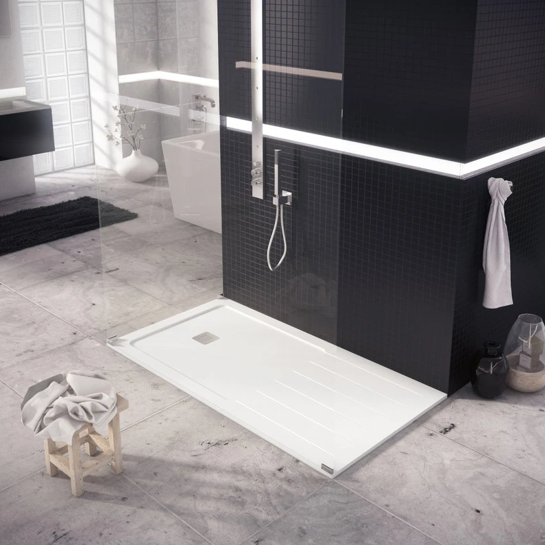 Receveurs de douche extraplats, Antidérapant classe 2, Différentes couleurs disponibles, Facile d’entretien, 0% de porosité, Résistant sur le long terme, Grille Inox incluse
