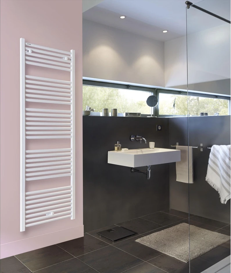 Radiateur sèche-serviettes en acier haute qualité 3 consoles de fixations réglables incluses Conçu pour l’utilisation en ambiances humides : protection anticorrosion haute résistance par 11 bains de traitement. Excellente durabilité : Peinture époxy et finitions homogènes sur toute la surface du radiateur,soudures invisibles sans sur-épaisseur. Pression de service de 4 bars. Température de service de 110°C maxi. Chaque Tweed est contrôlé à 14 étapes de fabrication. Chauffage efficace et réactif. Chaleur homogène et enveloppante. Double fonction : chauffe la pièce + sèche rapidement les serviettes. Grande capacité d’étendage. Accrochage facile des peignoirs Raccordements : • 2 orifices de raccordements diamètre 1/2’’ • 1 purgeur d’air 1/2’’ à jet orientable et un bouchon chromé 1/2’’ (fournis dans l’emballage)
