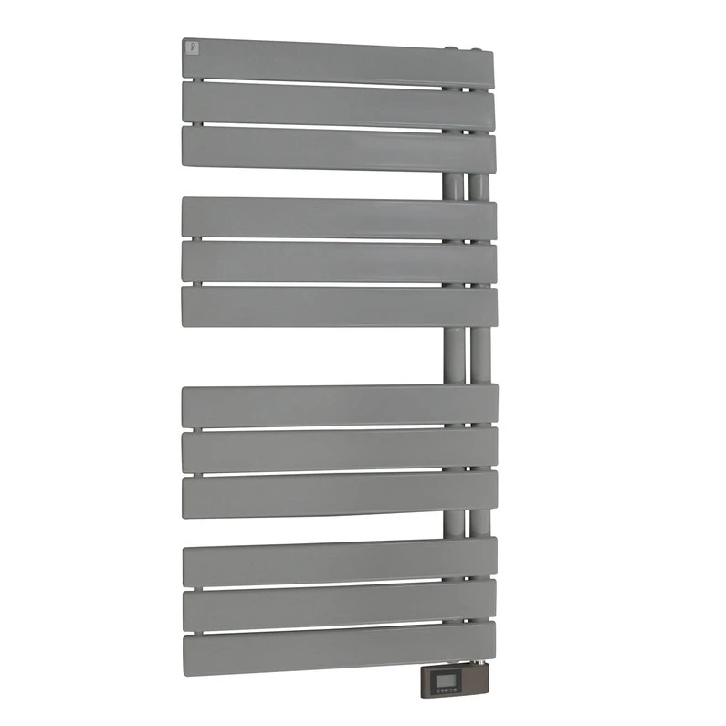 Sèche-serviettes à fluide caloporteur. Corps en acier, lames plates droites (70x10mm) asymétriques. Grand capacité de portage. Facilité de positionnement des serviettes. Thermostat digital avec programmation hebdomadaire libre. Sécurité enfants avec verrouillage du clavier. Détecteur de fenêtres ouvertes. Disponible en plusieurs coloris : blanc, gris, anthracite, taupe, noir.